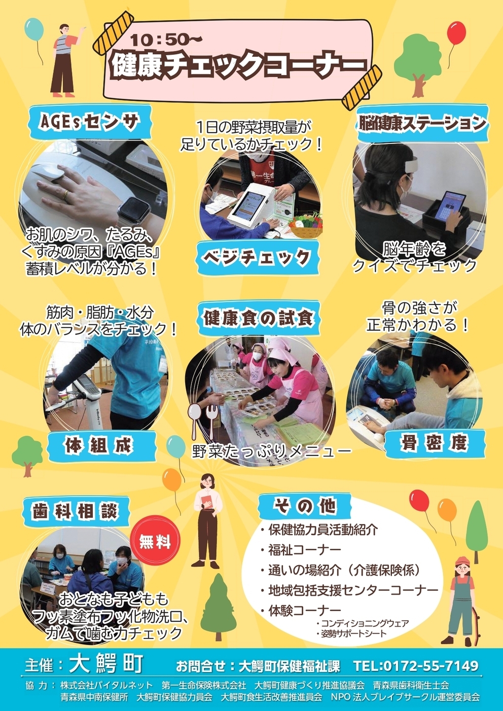 その他、保健協力員の活動紹介や保健福祉課各係のコーナー等もございます。