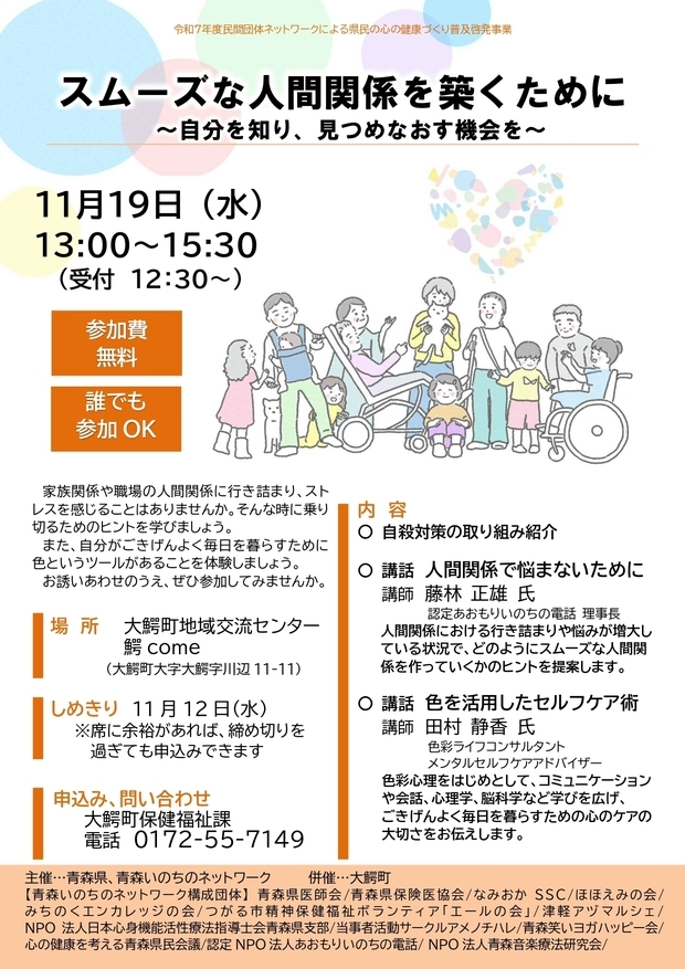 こころの健康に関する講演会を開催します。皆様お誘い合わせのうえ、ご参加ください。